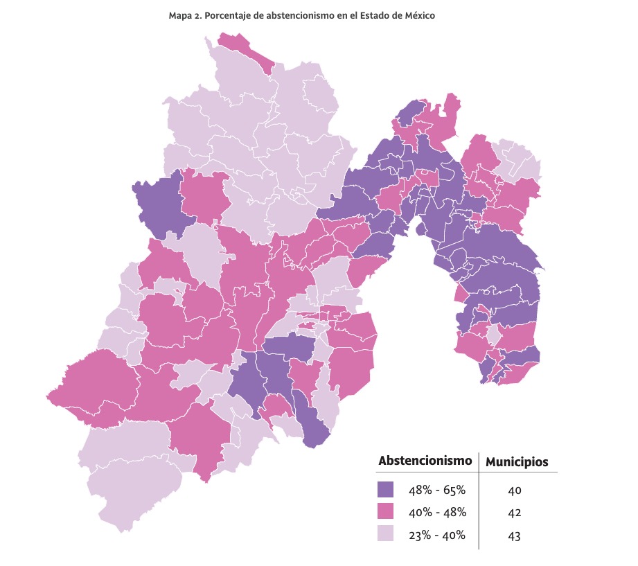 Por ello establecieron como recomendaciones llevar a cabo campañas de posicionamiento y promoción del voto a nivel estatal; el fortalecimiento en la educación cívica entre la niñez y la juventud; un programa integral de accesibilidad al voto y atención a las personas con discapacidad; estudios regionales sobre abstencionismo en Toluca y el Valle de México, principalmente, porque hay muchas diferencias en la entidad, por regiones y municipios.