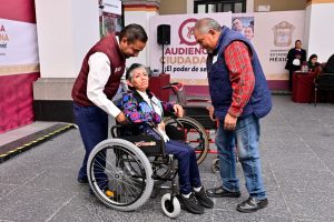 Bajo un nuevo formato que busca atender de manera eficiente y rápida a la ciudadanía, la Gobernadora Delfina Gómez Álvarez realizó la Cuarta Audiencia Ciudadana durante cinco días, cada uno dedicado a un sector específico; uno de ellos fue salud, dando respuesta inmediata con la entrega de sillas de ruedas, andaderas y programas de bienestar.