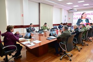 Más tarde, también en Toluca, desde el C5 encabezó la Mesa de Paz en la que se informó que en el Estado de México se registró una disminución del 13 % en delitos relacionados a violencia de género en lo que va de este año.