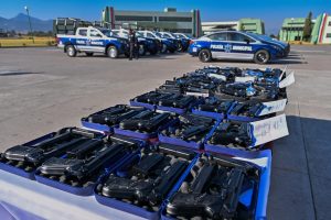 - El equipamiento fue destinado a 85 municipios; 119 patrullas y 450 nuevas armas.