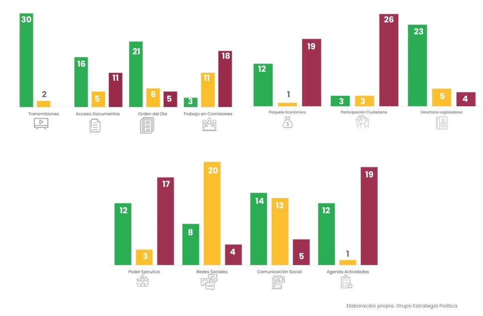 El Grupo Estrategia Política (GEP), midió la transparencia legislativa en los Congresos locales de México y encontró que algunos han avanzado en la implementación de mecanismos de acceso a la información, pero otros aún enfrentan retos importantes para garantizar estándares mínimos en este ámbito y aunque existen sanciones, no hay evidencias de que se apliquen en este ámbito.