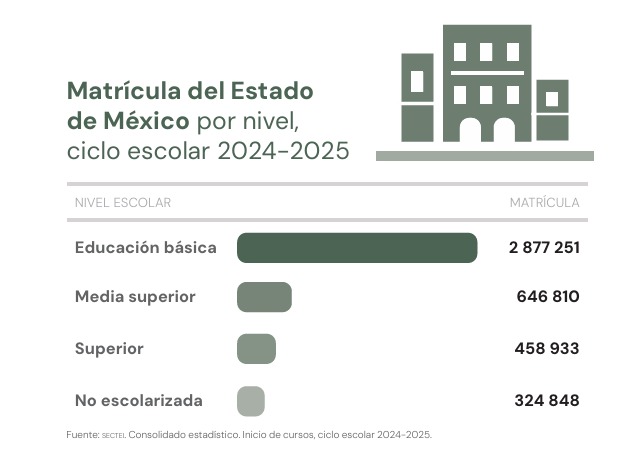 La matrícula del sistema educativo del Estado de México supera los 4. 3 millones de estudiantes en todos los niveles, pero a medida que pasa de uno a otro se reduce el nivel de atención.