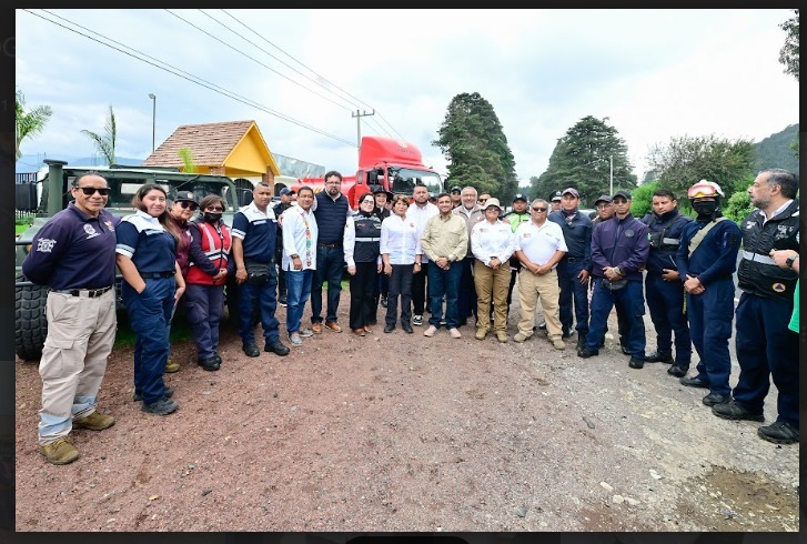 La Maestra Delfina Gómez saludó a elementos de la Secretaría de la Defensa Nacional, la Secretaría de Seguridad estatal, así como a elementos de Protección Civil estatal y Bomberos municipales a quienes reconoció su dedicación y labor en beneficio de las familias mexiquenses.