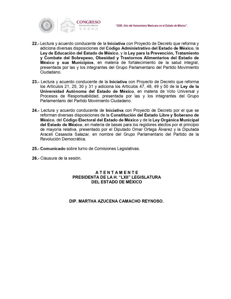 Otros de los temas enlistados tienen que ver con reformas a la Ley de Movilidad para la construcción e integración de ciclovías municipales; quieren tipificar como delito grave la omisión de auxilio al lesionado; proteger a las infancias del riesgo de las redes sociales, entre otros temas que serán remitidos a comisiones para su análisis y dictaminación.